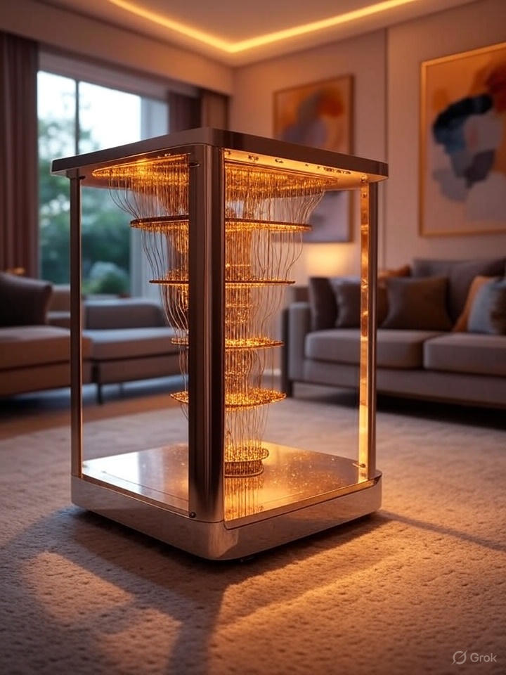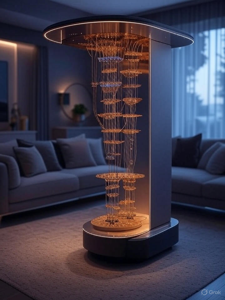 문을 열고 들어서자마자 눈에 띈 건 거대한 샹들리에도, 고풍스러운 가구도 아니었다. 거실 한가운데, 마치 SF 영화에서 튀어나온 듯한 기계가 있었다. 빛나는 LED와 복잡한 배선, 그리고 은은한 냉각 팬 소리. 바로 양자컴퓨터였다.